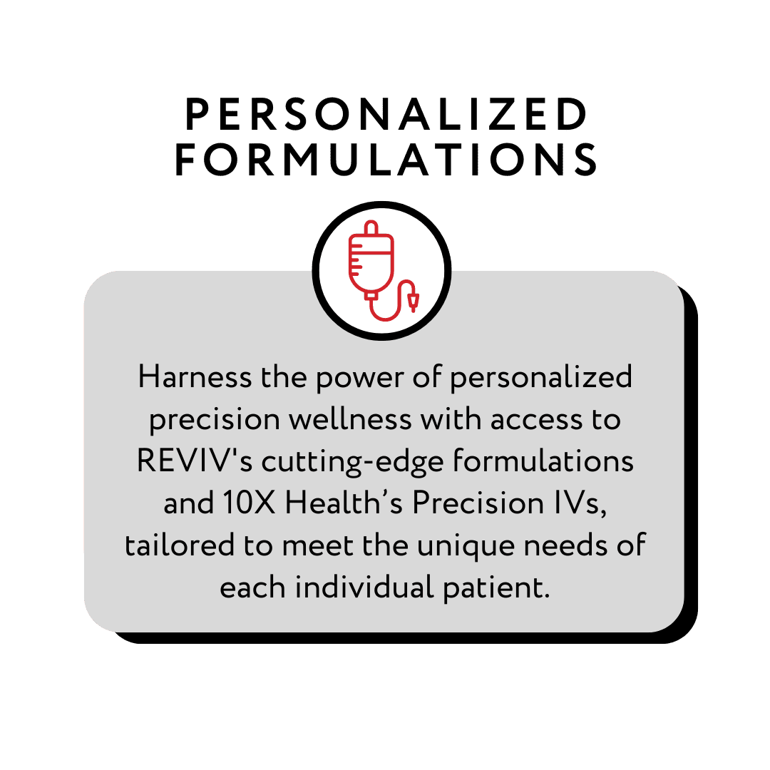 Experience the power of personalized wellness with RevivX's patented Solutions, tailored to meet every client's unique needs.